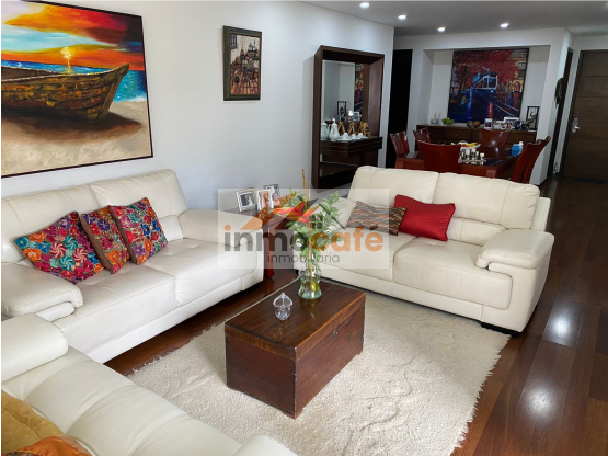 Área total: 188 m². Distribución: 3 amplias alcobas, cada una con aire acondicionado. Habitación principal: Con vestier y baño privado. Baño de la habitación principal: Con división en vidrio templado, doble lavamanos, mueble de almacenamiento y espejo flotante. 3 baños completos (1 en la alcoba principal y 2 adicionales), todos con división en vidrio templado, mueble de almacenamiento y espejo flotante. Sala-comedor: Espaciosa, con cortinas Pentagrama. Sala de TV: Con cortinas Pentagrama y black-out. Cocina integral: Con buen almacenamiento, estufa a gas, horno gas/eléctrico y piso en porcelanato. Zona de ropas: Espaciosa, con acceso a un calentador de agua a gas. Habitación de servicio: Con baño privado. 1 balcón con vista hacia el oriente. 1 balcón con vista hacia el sur de la ciudad. Piso Madera laminada en las habitaciones y áreas comunes; porcelanato en la cocina y zona de ropas. Aire acondicionado: Instalado en todas las habitaciones. Persianas: Hunter-Douglas en las habitaciones, con opción black-out. iluminación: Luces LED empotradas en el cielo raso. Otras Características: Parqueadero: Espacio para 3 vehículos. Depósitos/Bodegas: 2 adicionales.