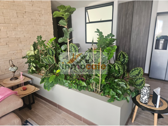 Apartamento con un área de 110 m², que incluye parqueadero y bodega. Consta de 2 alcobas con clóset, 2 baños amplios con división en vidrio y espacio para almacenamiento, sala–comedor con pared texturizada, cocina integral con barra americana, balcón con vista a la calle, amplio pasillo que conduce a las alcobas y una jardinera interna que aporta frescura y armonía al espacio.