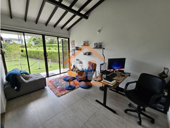 Casa campestre de 230 m², una sola planta, con sala comedor amplia, cocina semintegral con barra tipo americana, zona de ropas, 3 alcobas con clóset y baño privado completo con división en vidrio templado, mueble y espejo, 1 baño social, estudio, bodega, 2 garajes y amplias zonas verdes.