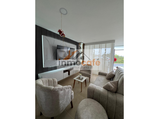 Segundo piso: Hall de habitaciones. Alcoba auxiliar con clóset. Alcoba principal con base de cama empotrada, baño privado con tina (jacuzzi), división en vidrio templado, mueble de almacenamiento, espejo con luz LED (sensor), persiana tipo blackout y clóset de pared a pared con espacio para televisión. Baño social completo con división en vidrio templado y espejo flotante. Piso en porcelanato cerámica, luces LED en techo y excelente iluminación natural.