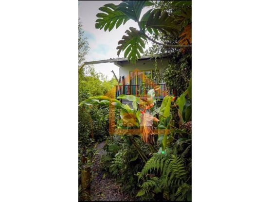 Área construida: vivienda familiar 100 m² + alojamiento turístico 80 m². Se vende amoblada. La propiedad cuenta con todas las comodidades: internet, gas domiciliario, bodegas, galpón con sistema de pastoreo para 100 gallinas, pozos sépticos adaptados para fertirriego y mantenimiento al día. La vivienda tiene 2 plantas: una cabaña remodelada con 2 habitaciones, 1 baño y 3 camas, y una segunda planta con 3 habitaciones, 2 baños, cocina amplia, sala de TV, patio de ropas y balcón con vista al guadual.